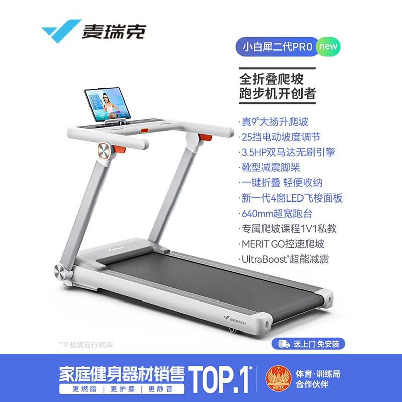麦瑞克MERACH 跑步机 小白犀二代 Pro 电机升级版 白色-高配版【25档电动坡度】MR-T07W2H 家用小型折叠智能健身房 静音室内爬坡机一件收纳折叠 四窗LED飞梭屏 小白犀二代电机升级版跑步机