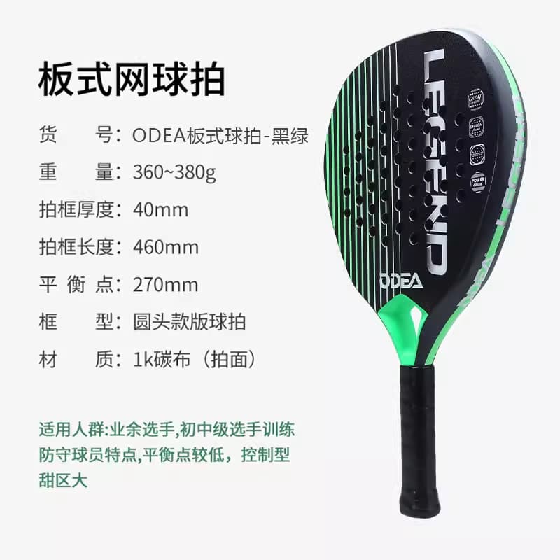ODEA欧帝尔 板式网球拍legend碳纤维专业笼式padel单人比赛球拍 黑绿色全碳素材质,控制型,甜区大