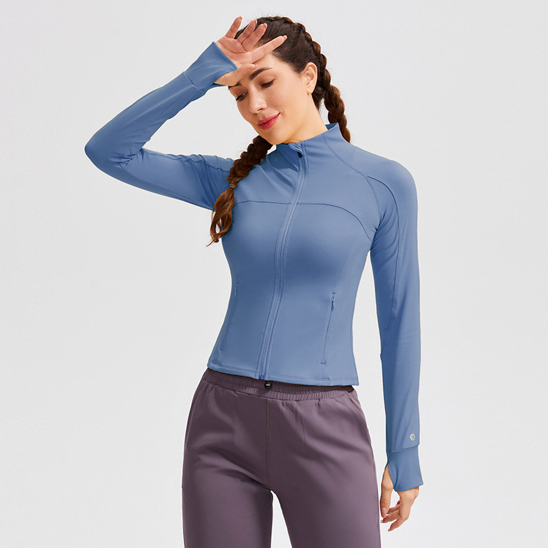 caijue 才爵 运动瑜伽外套 长袖女秋 修身显瘦弹力 高级感气质瑜伽服 跑步健身外套外套 NSRF2342501 灰蓝色超强弹性 修身显瘦