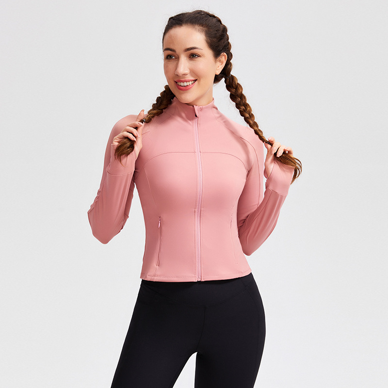 caijue 才爵 运动瑜伽外套 长袖女秋 修身显瘦弹力 高级感气质瑜伽服 跑步健身外套外套 NSRF2342501 梅沙色超强弹性 修身显瘦