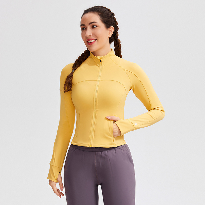 caijue 才爵 运动瑜伽外套 长袖女秋 修身显瘦弹力 高级感气质瑜伽服 跑步健身外套外套 NSRF2342501 枇杷黄超强弹性 修身显瘦