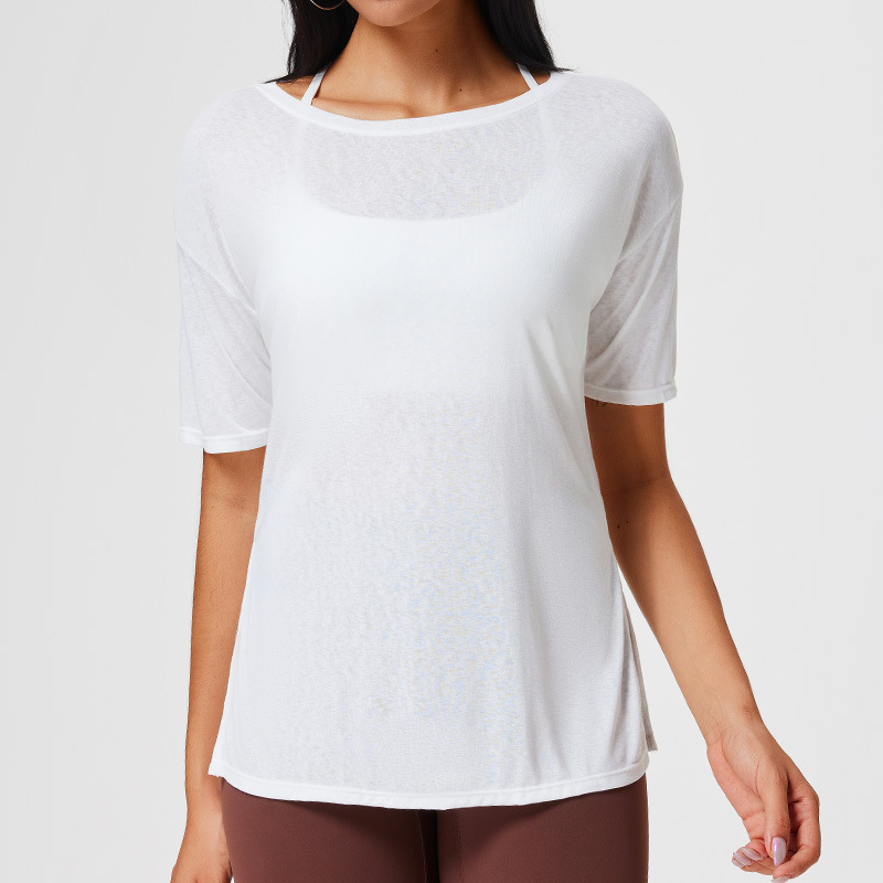 范斯蒂克 开叉健身衣罩衫(短袖款)YCF2501001白色 夏季短袖透气休闲时尚百搭跑步运动瑜伽罩衫亲肤云感 四面弹力 开叉健身衣罩衫(短袖款)YCF2501001 白色