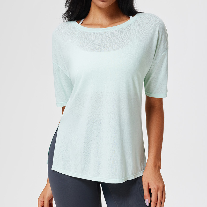 范斯蒂克 开叉健身衣罩衫(短袖款)YCF2501001 绿色 夏季短袖透气休闲时尚百搭跑步运动瑜伽罩衫亲肤云感 四面弹力 开叉健身衣罩衫(短袖款)YCF2501001 绿色
