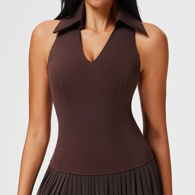 范斯蒂克 速干瑜伽服 蒸馏咖啡色 背心女夏 带胸垫一体杯防震工字型速干瑜伽服速干瑜伽服 范斯蒂克 NSRF2504001 超强弹性背心女 V型翻领设计 经典工字背 透气一体杯