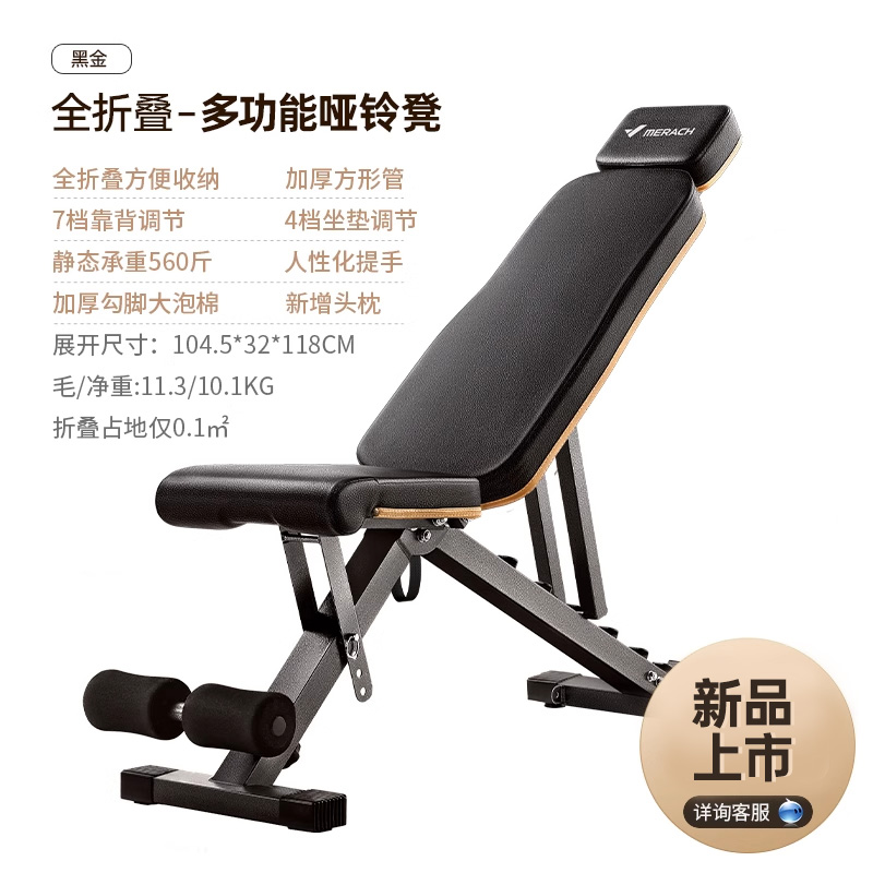 麦瑞克MERACH新品多功能哑铃凳可折叠免安装家用肌肉锻炼器材黑色-全折叠版 MR-2360健身器材,运动潮流