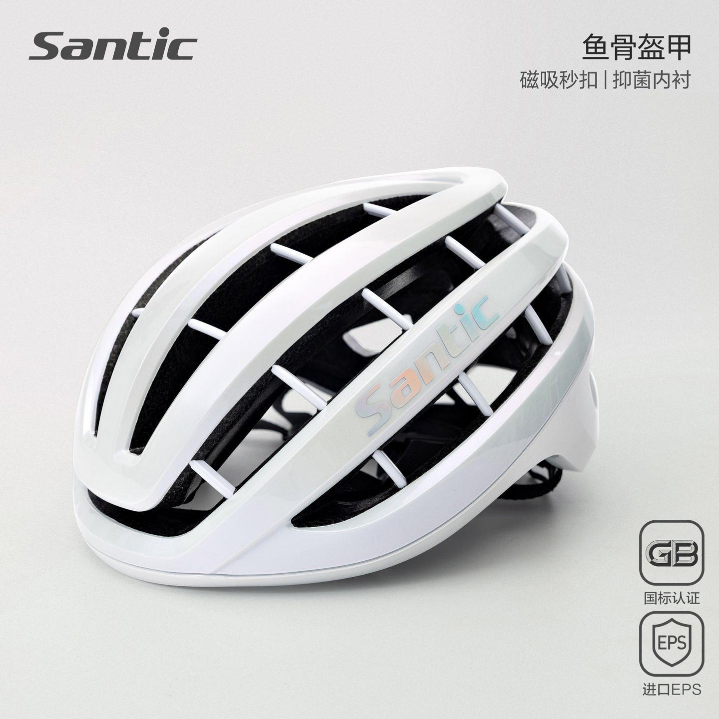 Santic森地客专业级公路车骑行头盔 骑行安全帽 公路山地自行车骑行装备 超轻头盔安全帽 男女款 鲲鹏 TZ25P224W 白色鱼骨防护 进口EPS材质 一体成型 坚固耐用