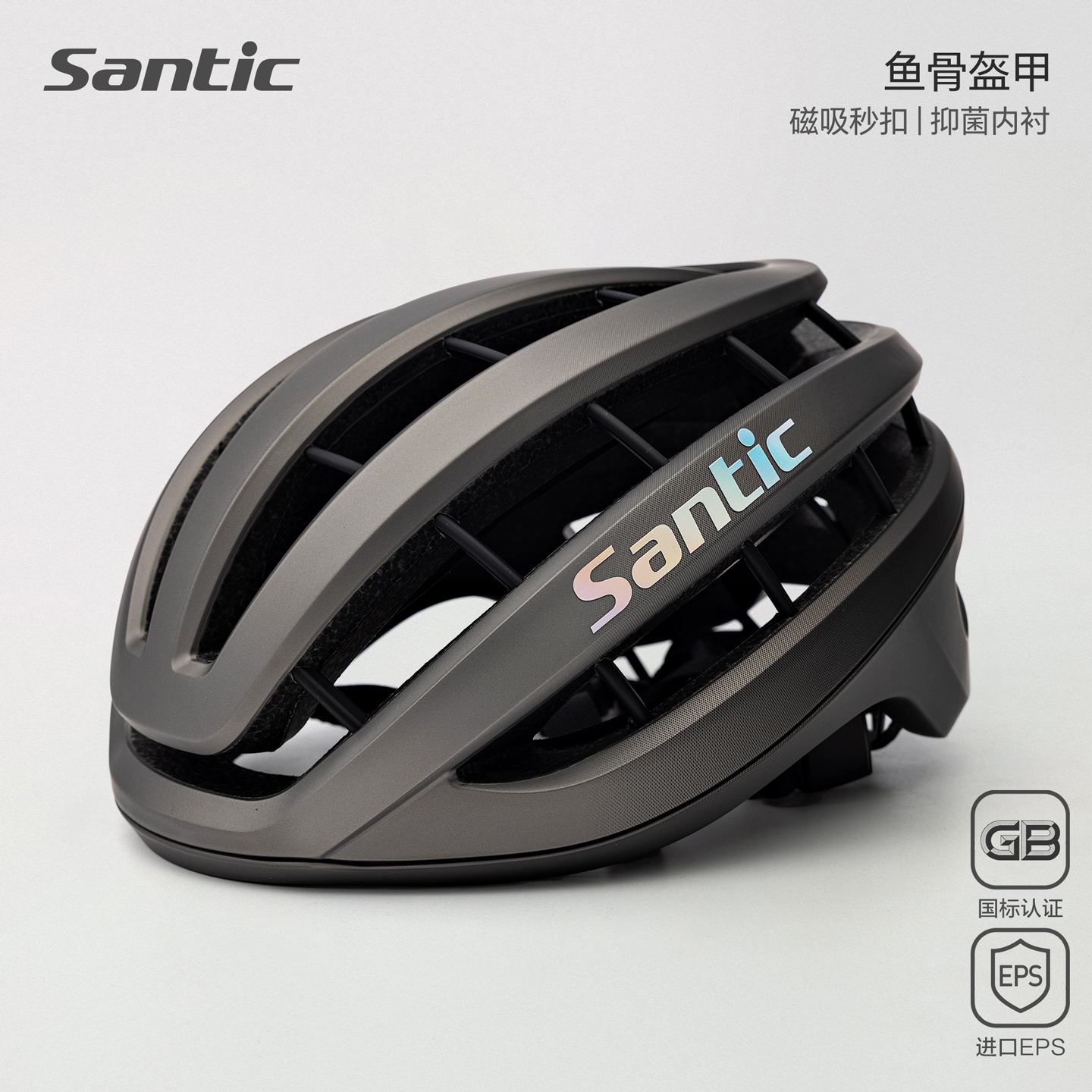 Santic森地客专业级公路车骑行头盔 骑行安全帽 公路山地自行车骑行装备 超轻头盔安全帽 男女款 鲲鹏 TZ25P224G 灰色鱼骨防护 进口EPS材质 一体成型 坚固耐用