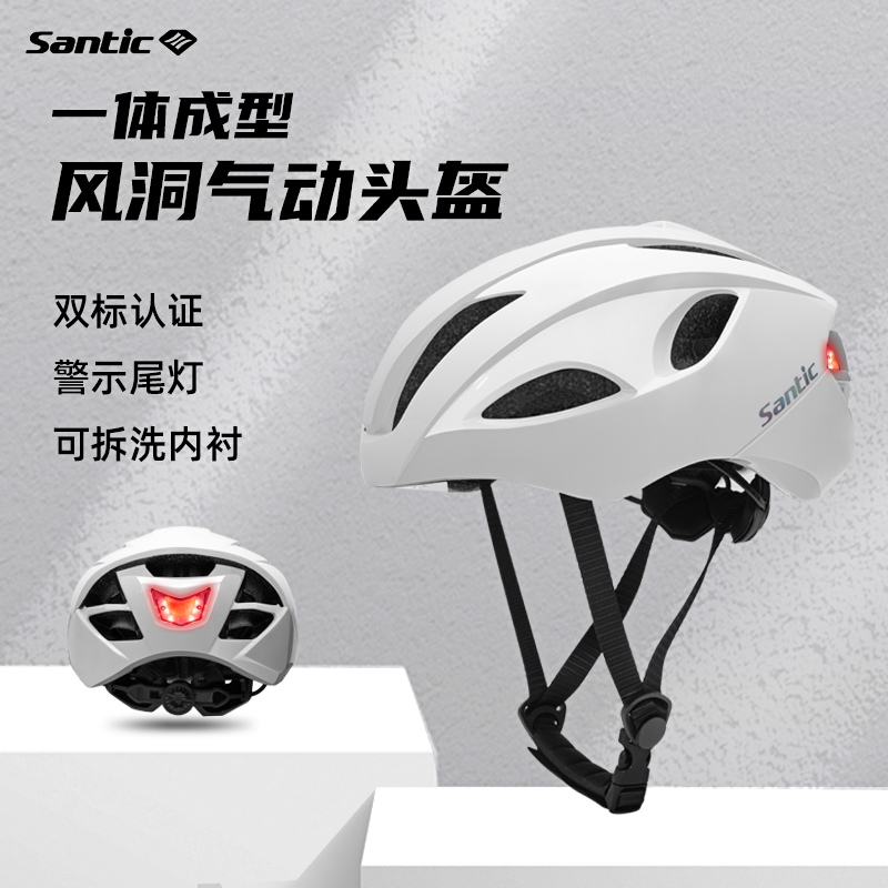 Santic森地客自行车骑行头盔 一体成型尾灯款公路车气动安全帽 云盏 W3P155W 白色双标认证 警示尾灯 可拆洗内衬