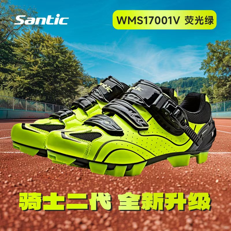 Santic森地客 骑行锁鞋 山地骑行装备 动感单车鞋 骑行鞋 自行车锁鞋 男款 WMS17001V 荧光绿骑士二代 全新升级 鞋面升级纳米镜面PU