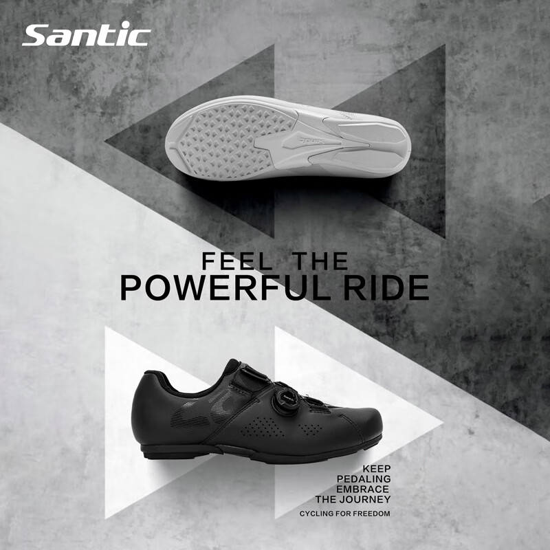 Santic森地客公路骑行锁鞋 男女款公路自行车单车鞋 歼1 专业公路锁鞋 S21029H 黑色耐磨易清洗 透气不闷脚 硬鞋底易发力