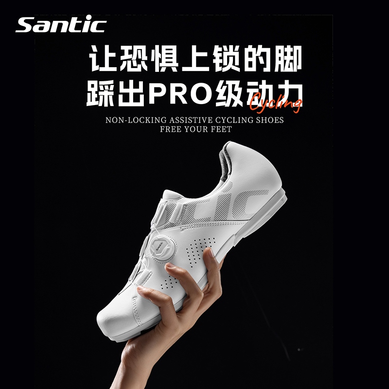 Santic森地客 全地形无锁骑行鞋 非锁助力骑行鞋 男女自行车休闲公路山地车骑行鞋 无锁鞋子 苍穹 TZS25058W 白色苍穹非锁助力骑行鞋,无锁胜有锁,一脚定乾坤
