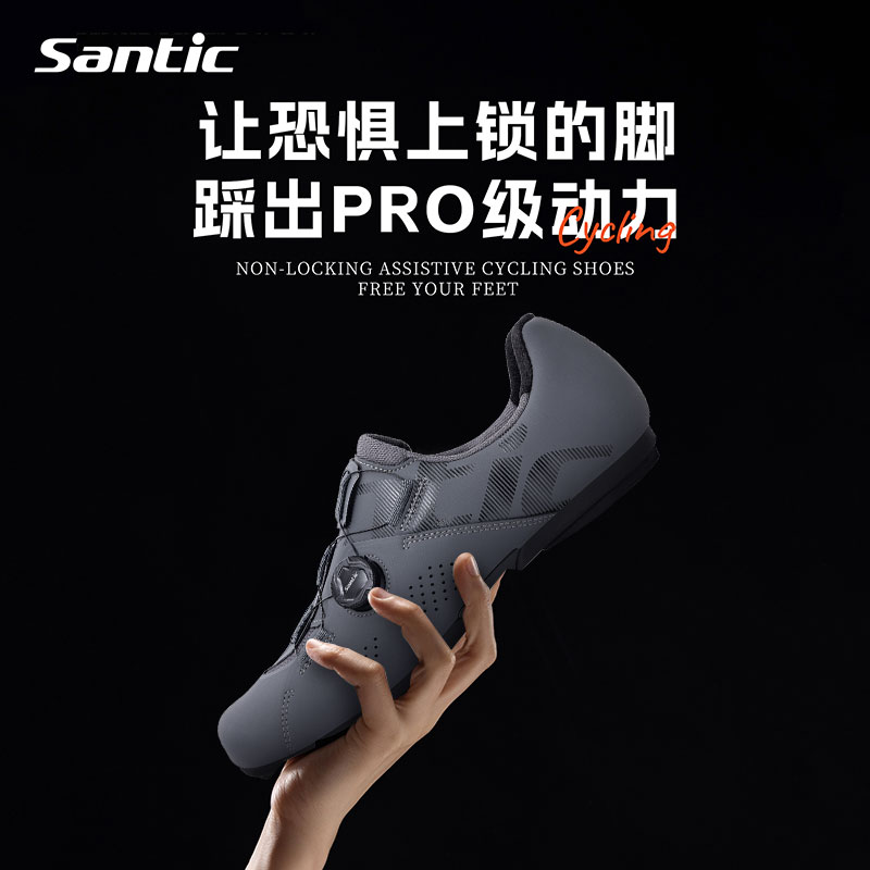 Santic森地客 全地形无锁骑行鞋 非锁助力骑行鞋 男女自行车休闲公路山地车骑行鞋 无锁鞋子 苍穹 TZS25058G 灰色苍穹非锁助力骑行鞋,无锁胜有锁,一脚定乾坤