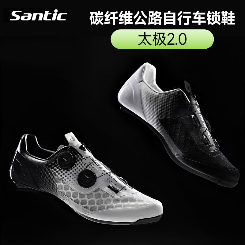 Santic森地客春夏骑行锁鞋 公路车14级碳纤鞋底骑行单车锁鞋 男款 太极2.0 TMS24052H 黑色碳纤维公路自行车锁鞋太极2.0