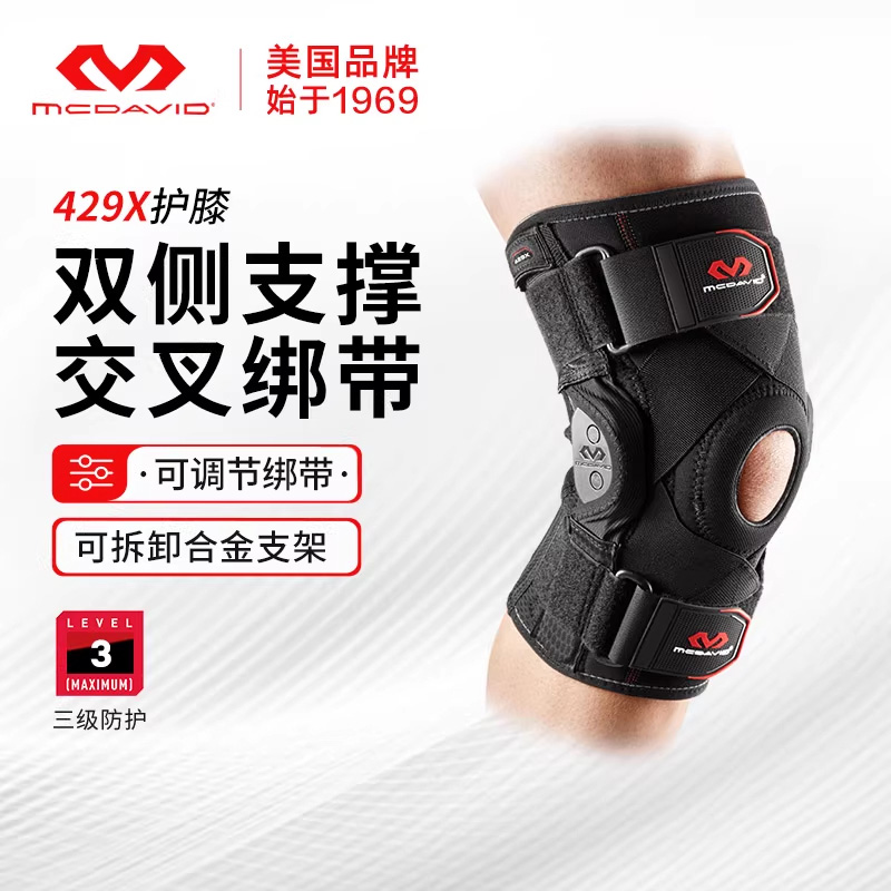 迈克达威(McDavid)美国膝关节韧带半月板扭伤术后合页架固定支撑滑雪护膝429X双轴合页 强力护膝