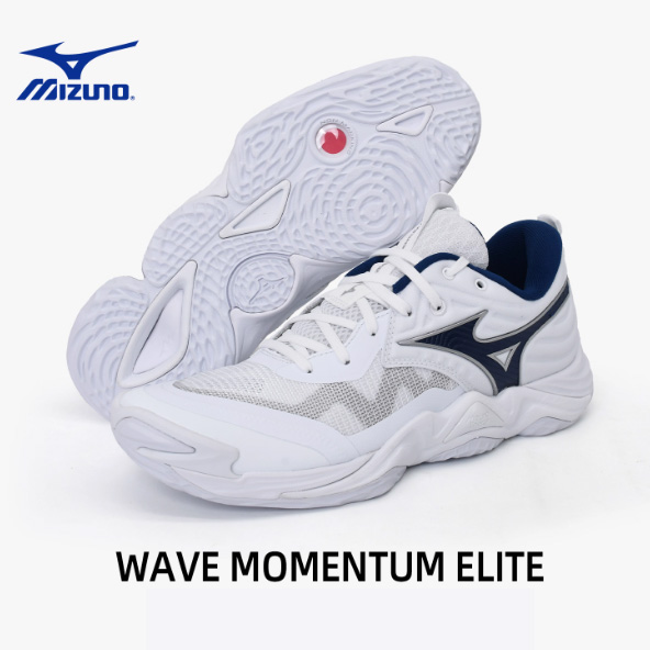角标 Mizuno美津浓专业排球鞋 WAVE MOMENTUM ELITE 男女比赛训练排球鞋 V1GA251255白色/深蓝色回弹缓震 包裹性强 实战利器