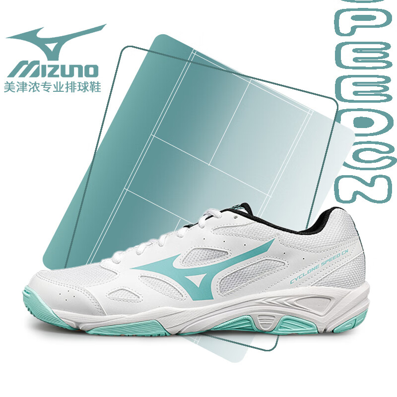 角标 MIZUNO美津浓 CYCLONE SPEED 5 男女排球鞋 综合训练鞋 V1GA2580-11白蓝防滑耐磨 抓地力强