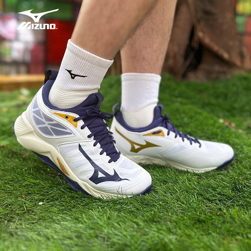 MIZUNO美津浓 CYCLONE SPEED 5 男女排球鞋 综合训练鞋 V1GA2580-52白灰色防滑耐磨 抓地力强