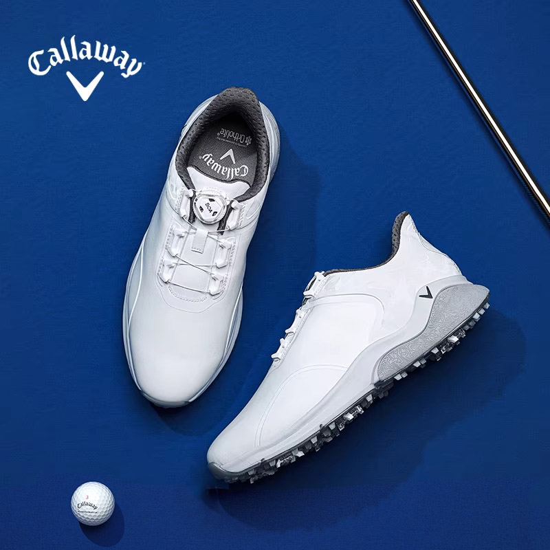 Callaway卡拉威 高尔夫球鞋 男士新款高尔夫男鞋专业高尔夫球鞋防滑钉鞋 白色透气散热,可调节松紧,百搭时尚