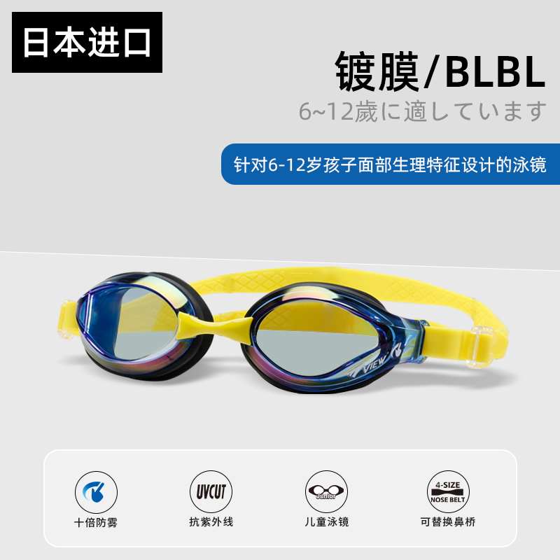 view儿童泳镜高清防雾游泳眼镜儿童通用泳镜V722JASA镜片采用聚碳酸酯材质,这种材质具有抗冲击性强、清晰度高