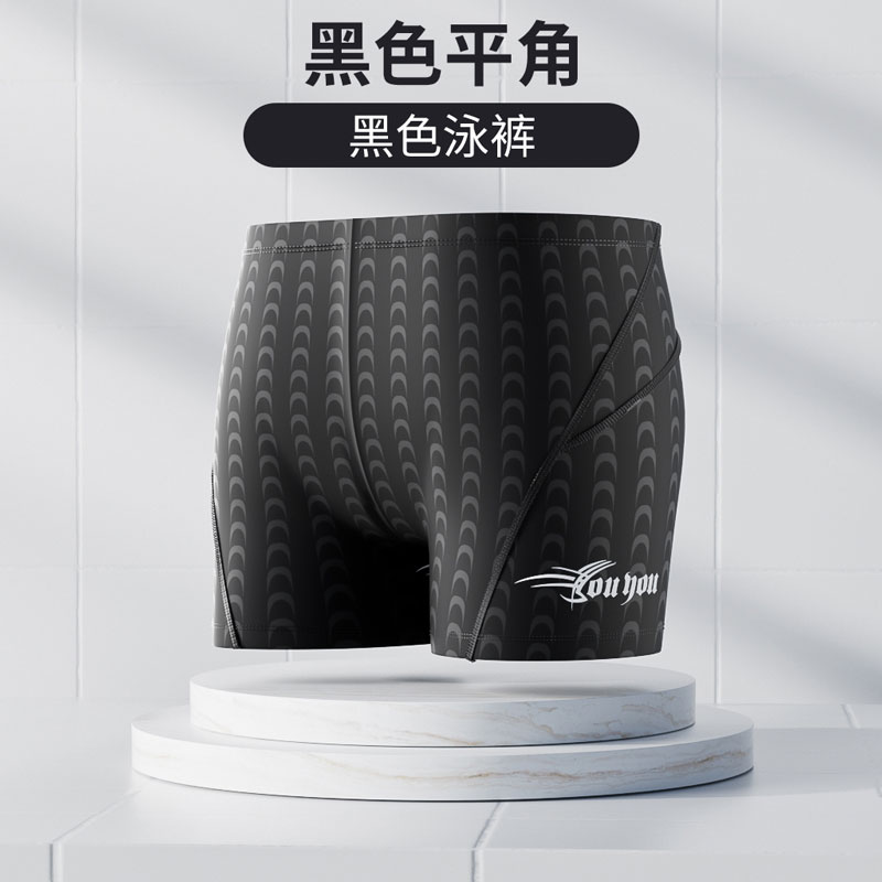 角标 佑游 男士平角游泳裤 速干泳裤 2025新款大码游泳裤 海边度假泡温泉 20254 黑色吸湿透气 柔软亲肤