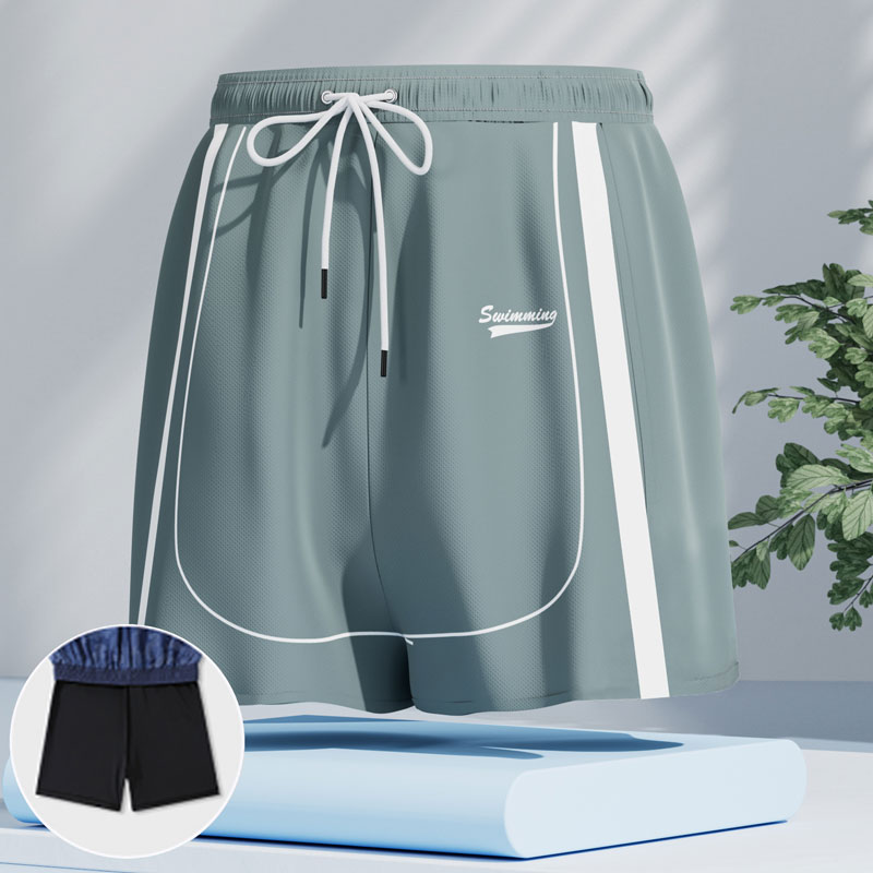 角标 佑游 男士平角游泳裤 宽松速干泳裤 2025新款大码游泳裤 海边度假泡温泉 23801Y 灰色【五分款】双层防尴尬专业速干泳裤