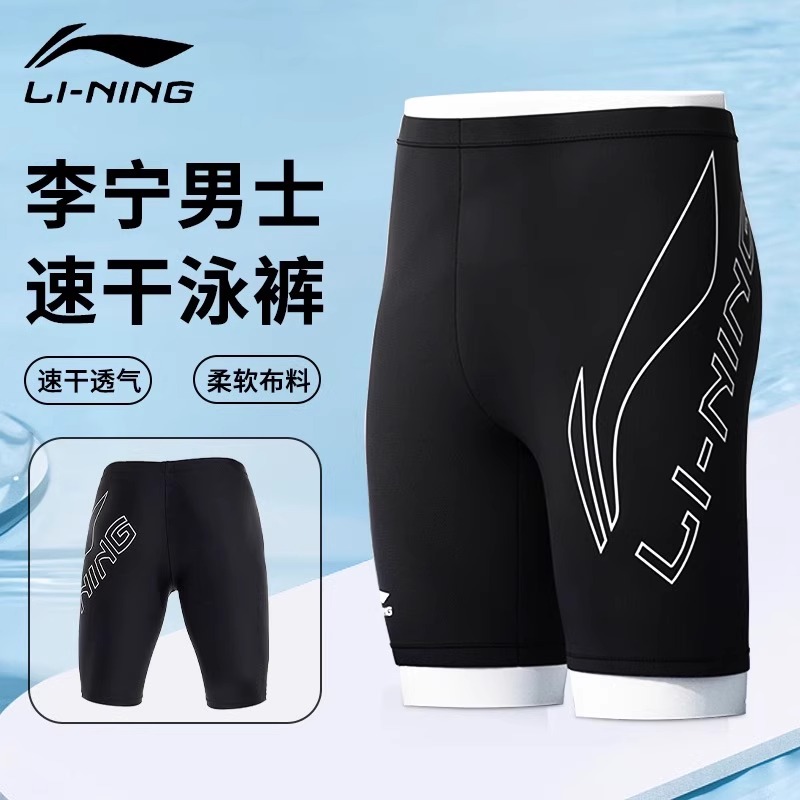角标 李宁LI-NING 男士泳裤-平角游泳裤专业泳装速干型泳裤,带有U型囊带,亲肤舒适,畅游无束缚,不勒不卡档