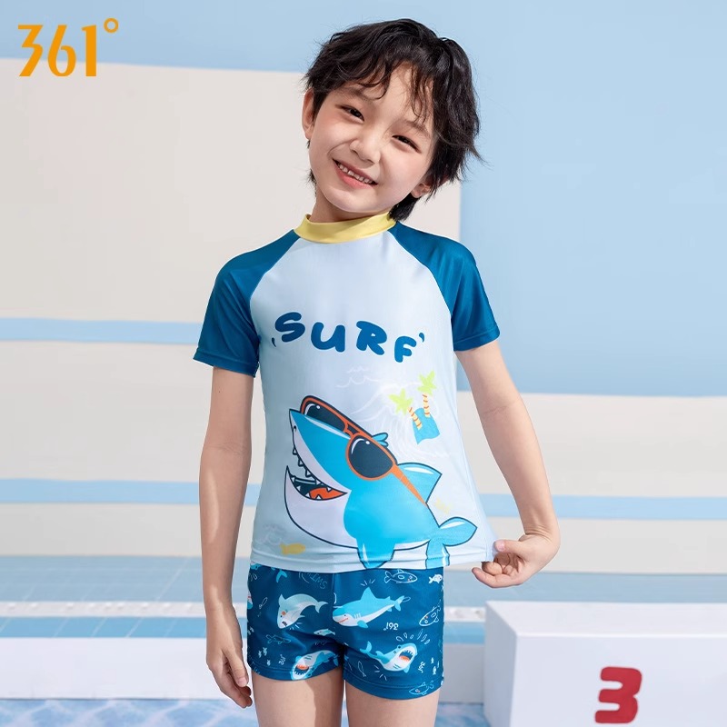361度 儿童游泳裤平角两件套宝宝游泳装备SLY215005面料柔软富有弹性,贴合舒适,适合宝宝游泳玩耍