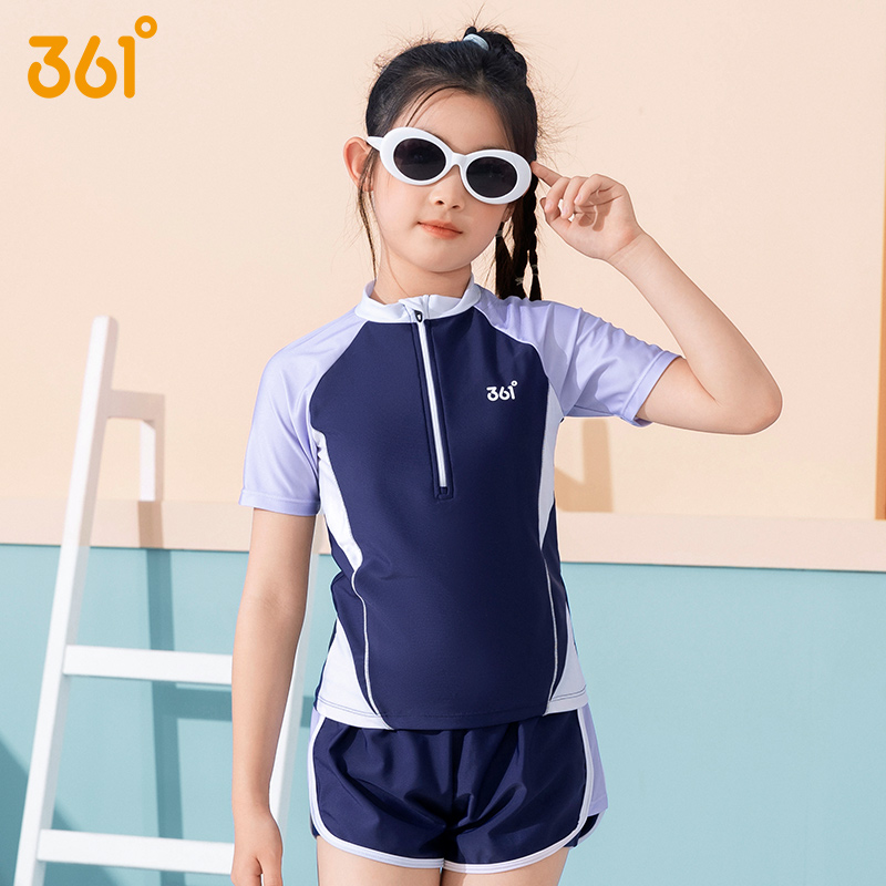 361度 女童分体游泳套装 2025新款泳装 初中生游泳衣 中大童分体泳衣 SLY24Y5477 藏青粉无感穿着 舒适亲肤