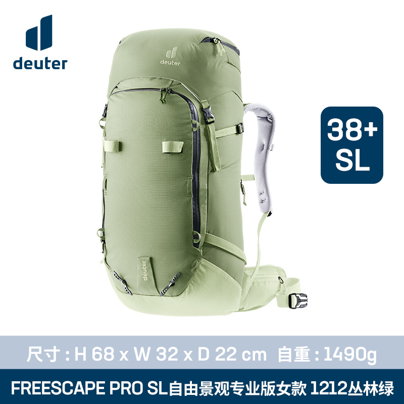 deuter多特 双肩背包 德国自由风景freescape户外双肩包 多功能雪板包 丛林绿/38+SL 3300222无畏前行 征服每一段旅程