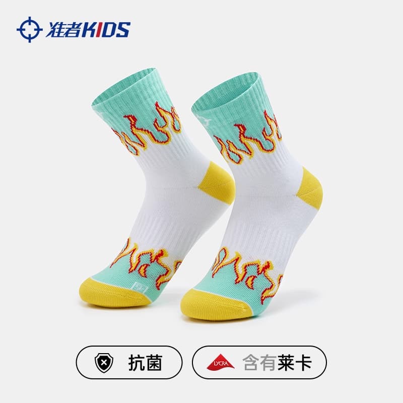 准者 篮球袜 儿童中筒男女小学生专业训练实战防滑透气跑步运动篮球袜 Z623140301 绿焰(白绿)弹力到位 为舒适加分