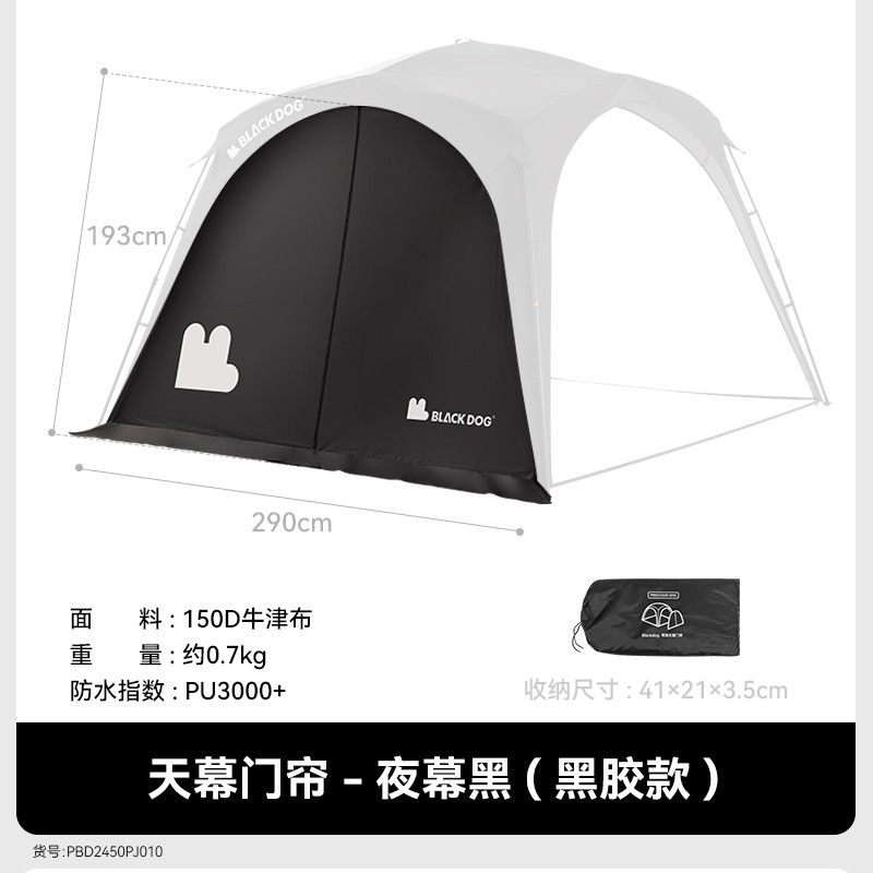 BLACKDOG黑狗 户外天幕 防雨露营黑胶帐篷穹顶帐篷自立遮阳帐篷 配件-黑胶门帘 CBD2450WS010遮阳防晒 畅享户外