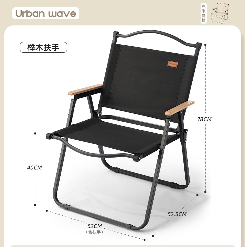 URBANWAVE城市波浪 户外折叠椅 克米特椅野餐椅便携桌椅沙滩椅露营椅子 榉木扶手典雅黑经典款 UW-0826便携舒适 畅享户外