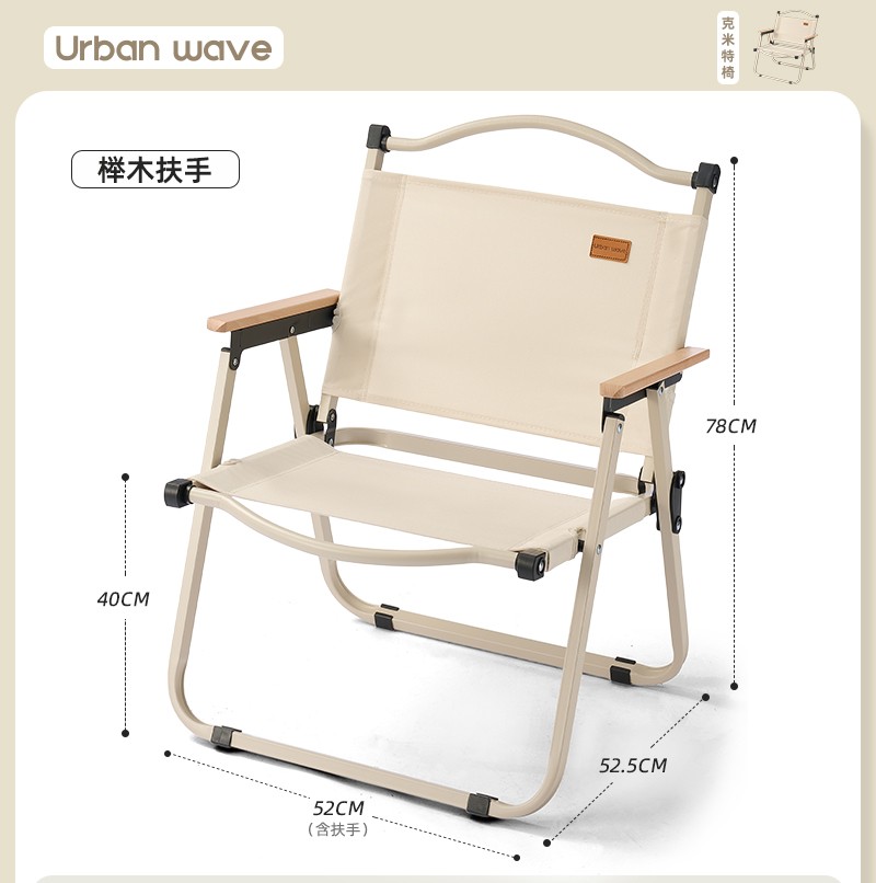 URBANWAVE城市波浪 户外折叠椅 克米特椅野餐椅便携桌椅沙滩椅露营椅子 榉木扶手米白色经典款 UW-0826便携舒适 畅享户外