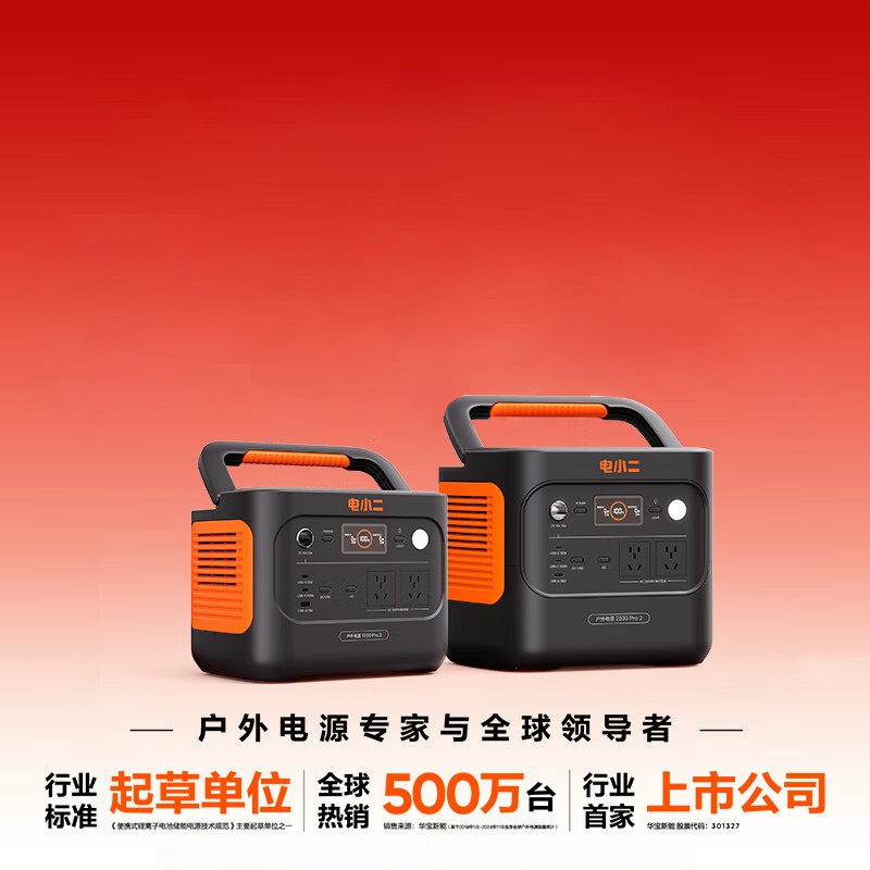 电小二 二度电 E2000Pro2 快充户外电源 2200W大功率大容量220V移动电源 车载露营应急户外作业蓄电池2度电容量 1度电身材 专业折叠把手 快充户外电源E2000Pro2