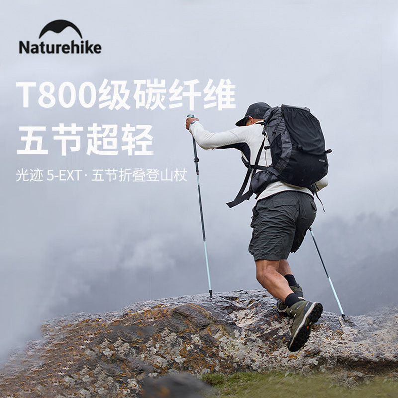Naturehike挪客 光迹5登山杖 EXT五节碳纤维折叠登山杖户外徒步登山超轻男女爬山手杖 CNK2550DS017 耐用超轻 收纳便捷