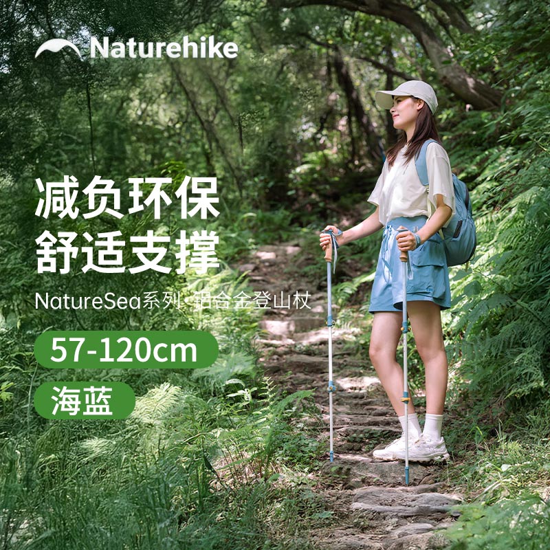Naturehike挪客 女户外登山杖 户外超轻铝合金三节登山杖伸缩手杖女款户外专业徒步爬山装备 CNK2550DS013 海蓝7075超轻铝合金 环保软木手柄