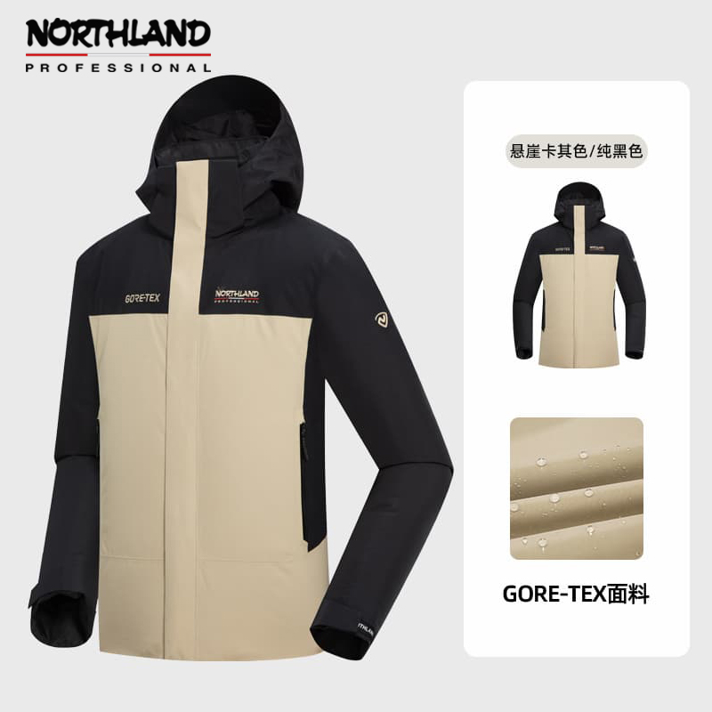 NORTHLAND诺诗兰 男 GORE-TEX冲锋衣单冲 徒步男士户外防水防风登山服 NWJEH5501S 悬崖卡其色/纯黑色持久防水防风 高度透气