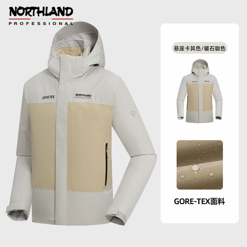 NORTHLAND诺诗兰 男 GORE-TEX冲锋衣单冲 徒步男士户外防水防风登山服 NWJEH5501S 悬崖卡其色/暖石咖色持久防水防风 高度透气