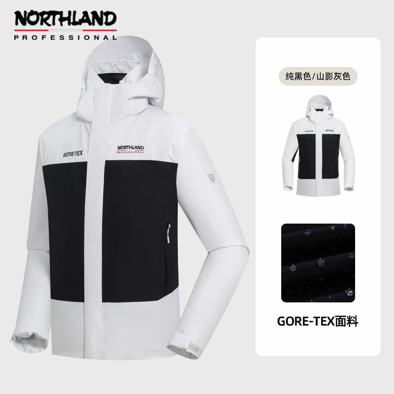 NORTHLAND诺诗兰 男 GORE-TEX冲锋衣单冲 徒步男士户外防水防风登山服 NWJEH5501S 纯黑色/山影灰色持久防水防风 高度透气