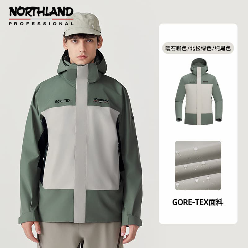 NORTHLAND诺诗兰 男 GORE-TEX冲锋衣单冲 徒步男士户外防水防风登山服 NWJEH5501S 暖石咖色/北松绿色/纯黑色持久防水防风 高度透气