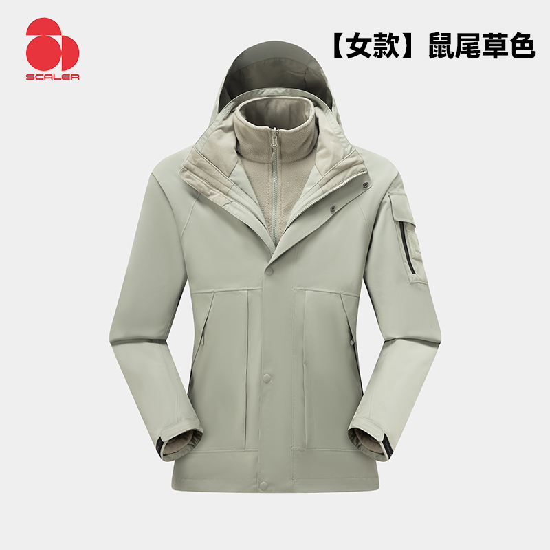 SCALER思凯乐 女冲锋衣 户外冲锋衣女秋冬可拆卸抓绒内胆防水保暖登山外套 F2406623 鼠尾草YKK拉链 加绒保暖 全面防风 挺括修身