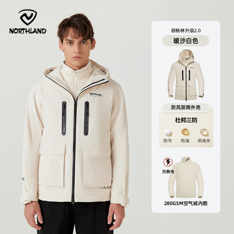 NORTHLAND诺诗兰 男女款冲锋衣 秋冬新款三合一男女防风防水透气加绒徒步进藏登山服 NWJET5501E 暖沙白色防风防水透气 耐磨防刮 一衣多穿