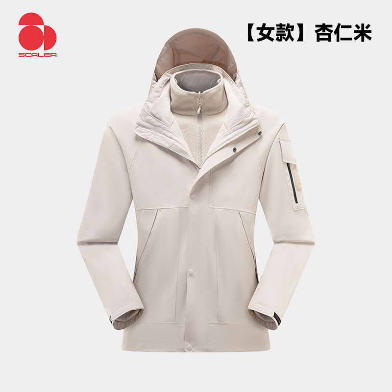 SCALER思凯乐 女冲锋衣 户外冲锋衣女秋冬可拆卸抓绒内胆防水保暖登山外套 F2406623 杏仁米YKK拉链 加绒保暖 全面防风 挺括修身