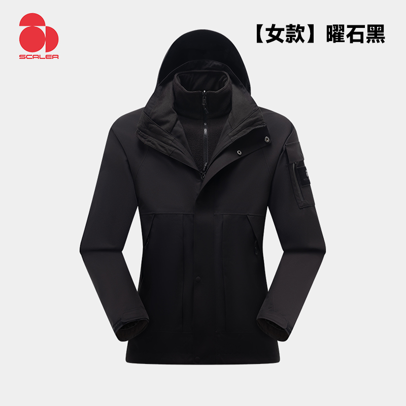 SCALER思凯乐 女冲锋衣 户外冲锋衣女秋冬可拆卸抓绒内胆防水保暖登山外套 F2406623 曜石黑YKK拉链 加绒保暖 全面防风 挺括修身