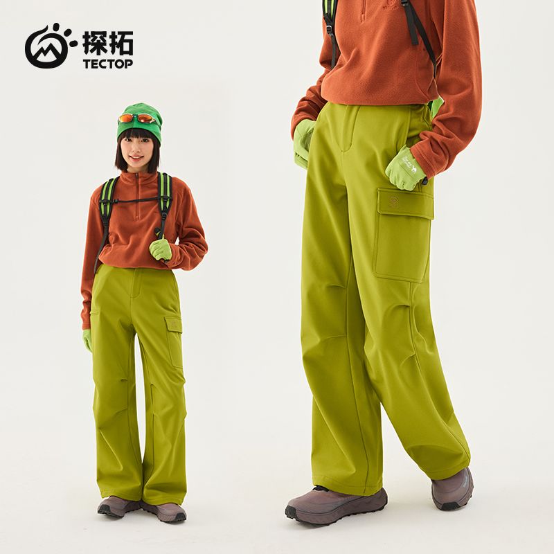 探拓 户外软壳冲锋裤 女士防风防泼水透气徒步登山工装长裤 2537612SZ 果酒绿舒适弹力 防泼水性 户外软壳冲锋裤 2537612SZ 果酒绿