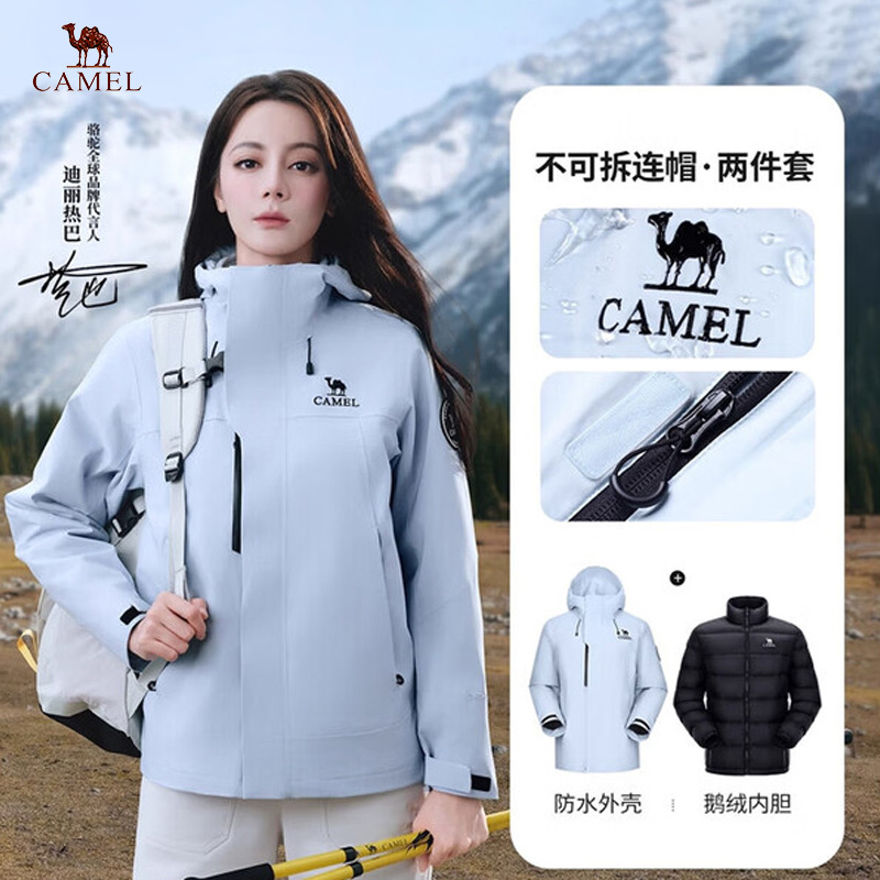 CAMEL骆驼 男女同款冲锋衣 迪丽热巴同款王者凯甲ICON冲锋衣男女三合一羽绒服登山服 A35CAFO193A 远山蓝