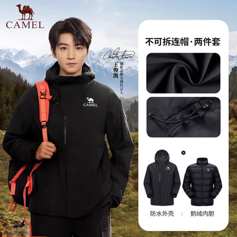 CAMEL骆驼 男女同款冲锋衣 三合一羽绒服王者凯甲ICON男女新款防风防水鹅绒版外套 A35CAFO193A 幻影黑保暖防风雨/御寒耐磨