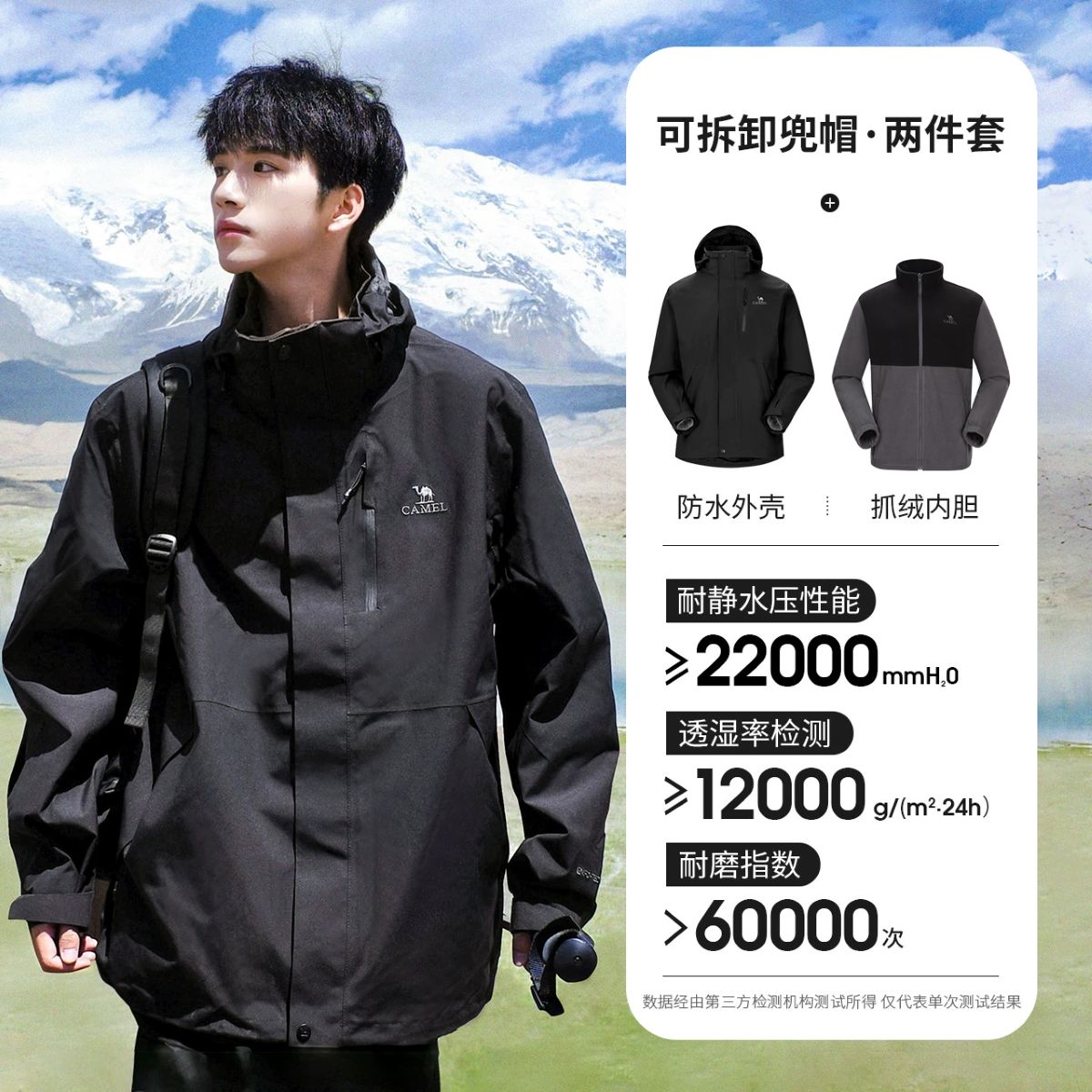 骆驼 三合一冲锋衣 3514系列三防冲锋衣 黑色外套男女户外防风防水旅游登山服 AD12263514X 幻影黑防水外壳 抓绒内胆 三合一冲锋衣 AD12263514X 幻影黑