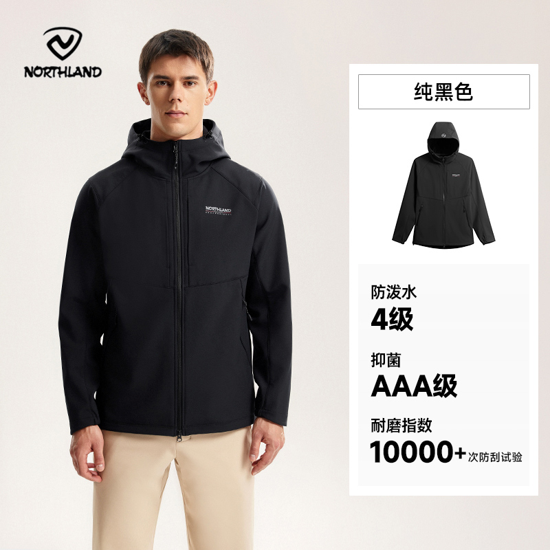 NORTHLAND诺诗兰 男风雪外套 25秋冬软壳衣男新加绒保暖防风户外徒步登山外套 NXJFH0474E 纯黑色三防 耐磨 可升温 抑菌
