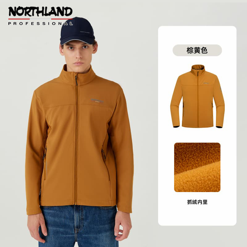 NORTHLAND诺诗兰 软壳衣 户外男女弹力外套 修身防风防泼水徒步登山外套上衣 NXJEH0505E 棕黄色本品参加新春开练满129减20 299减50 499减80 999减120元大促!